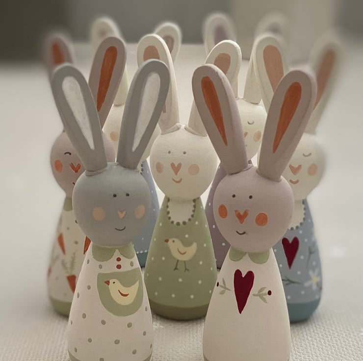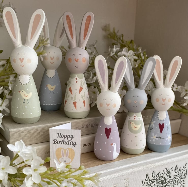 Choose from our fluffle of bunnies! (A fluffle is the collective noun for bunnies) each one is painted by hand and slightly different.