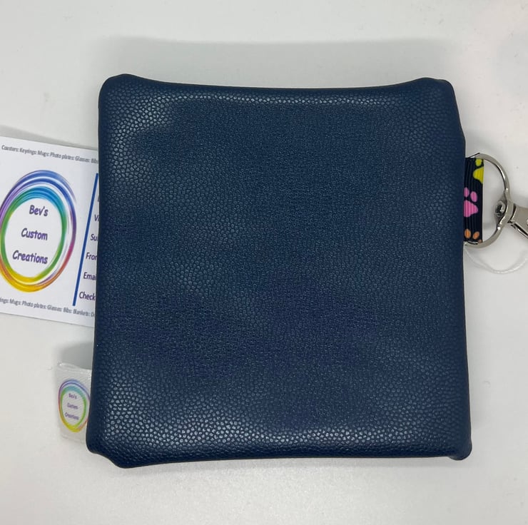 Handmade, embroidered small bag to fit a roll of poo bags, clips onto your dog’s harness, some leads or your belt strap. Bags dispenses through the hole on the bag.