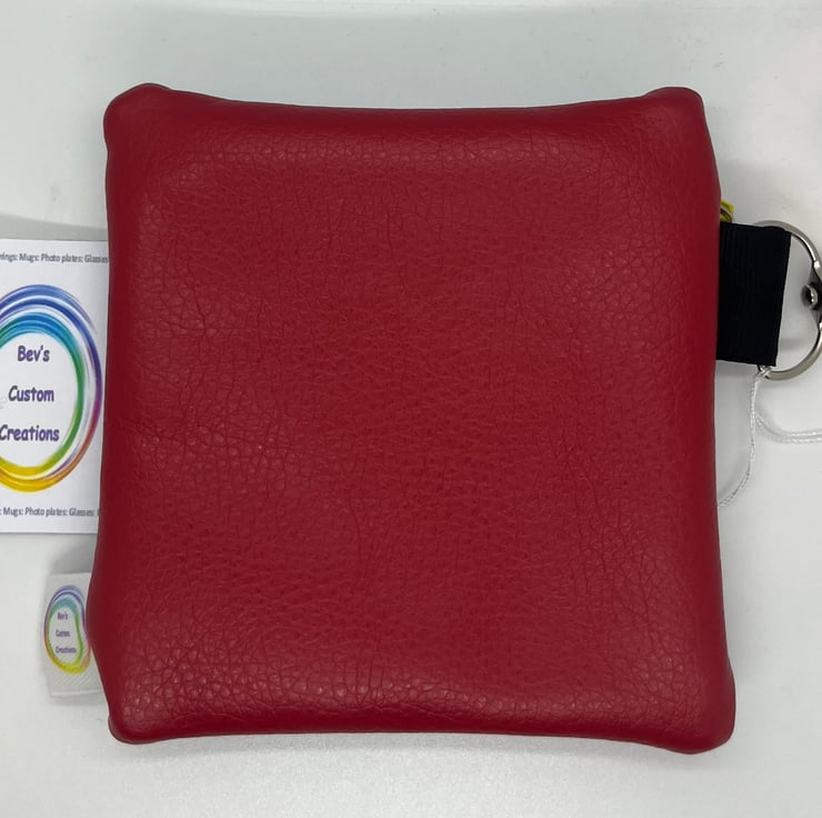 Handmade, embroidered small bag to fit a roll of poo bags, clips onto your dog’s harness, some leads or your belt strap. Bags dispenses through the hole place on the bag.
