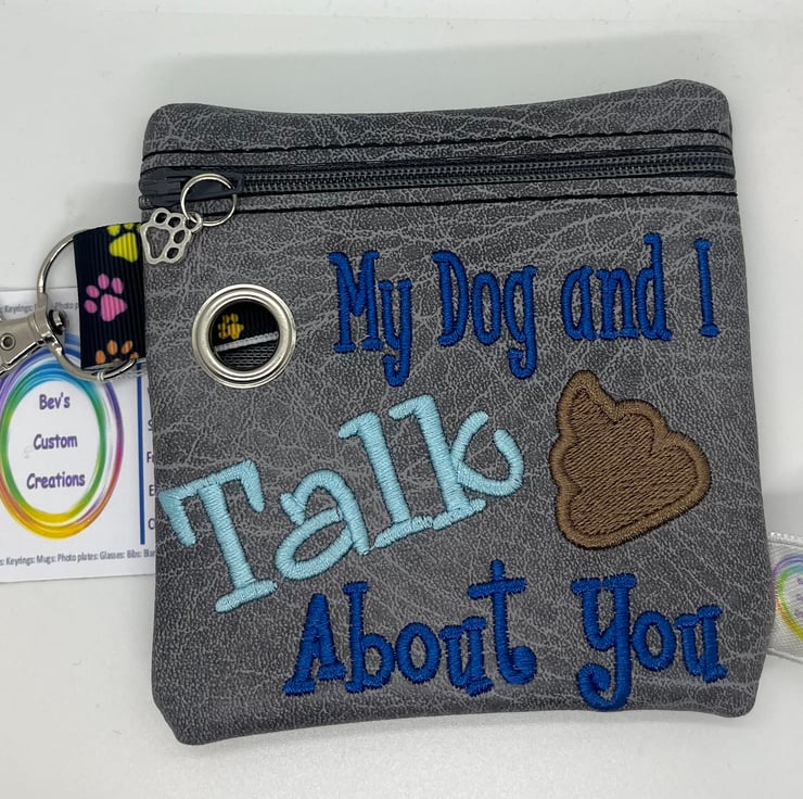 Embroidered My Dog and I Talk poop about you poo bag dispenser.