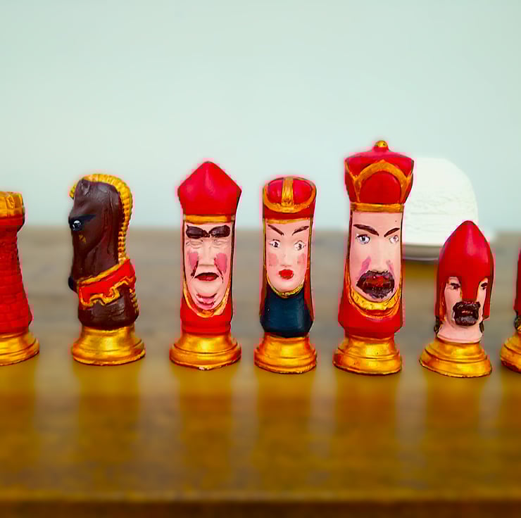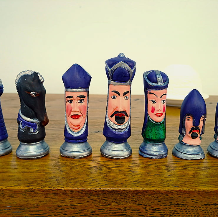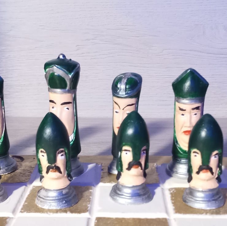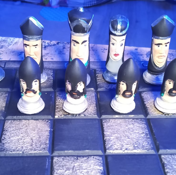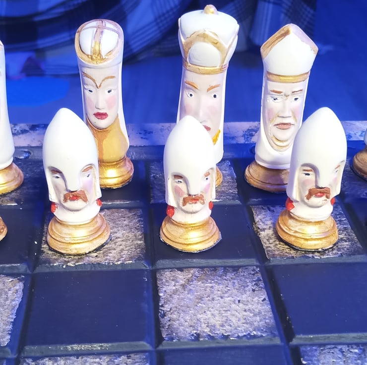 Ornamental, Chess Set, Gothic Style Heads,Handmade,Hand Painted.Made in Scotland
