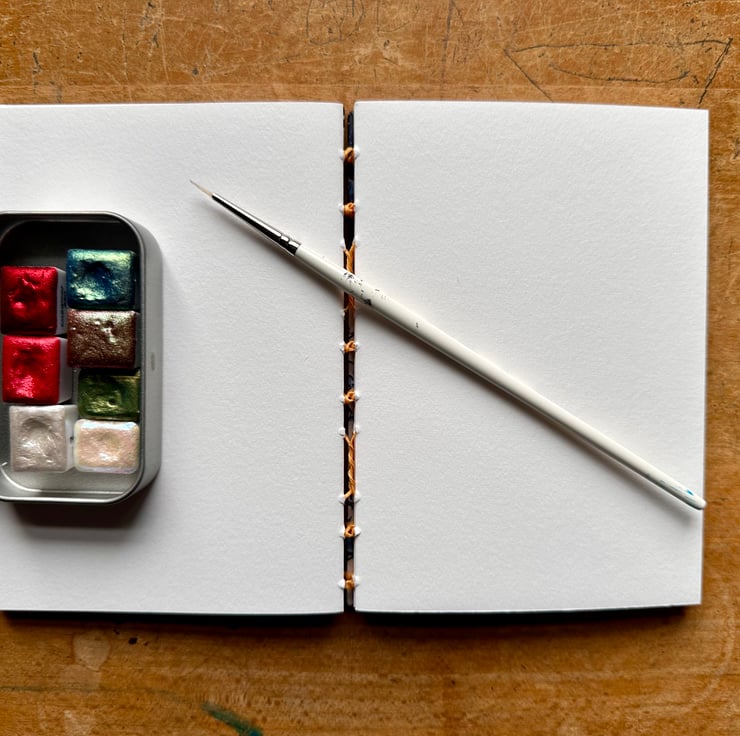 The 36 pages (72 sides) are 160gsm white Fabriano Accademia cartridge paper with straight cut edges.
