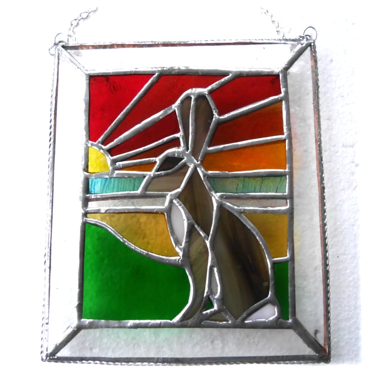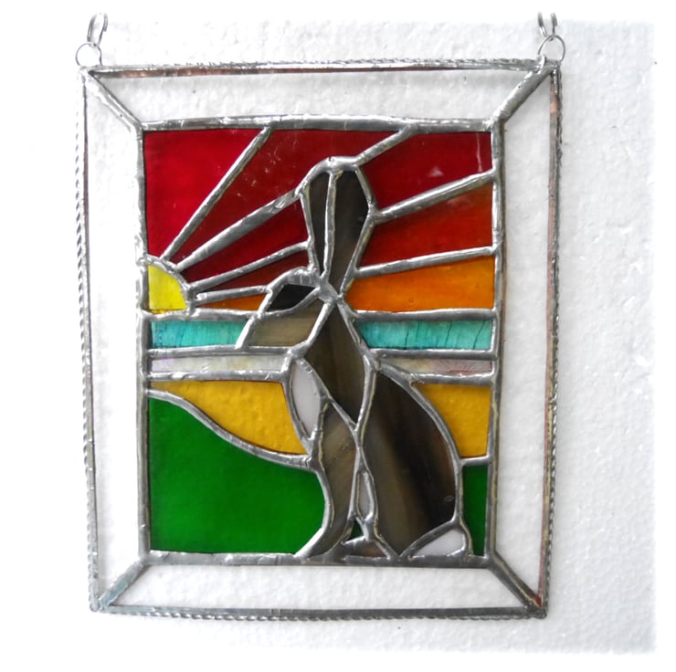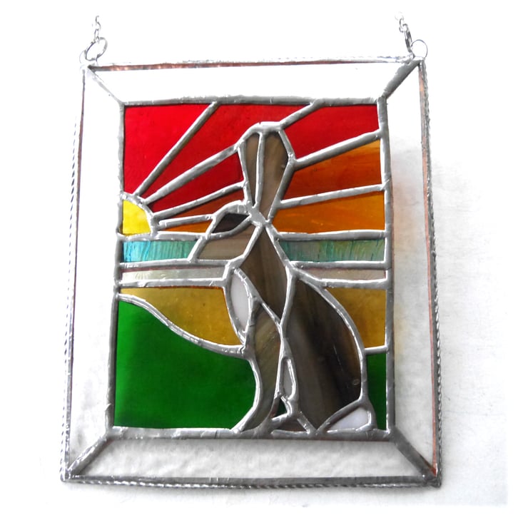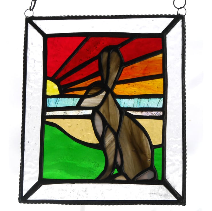 It is a striking 'picture' of a brown hare against a sunset background.