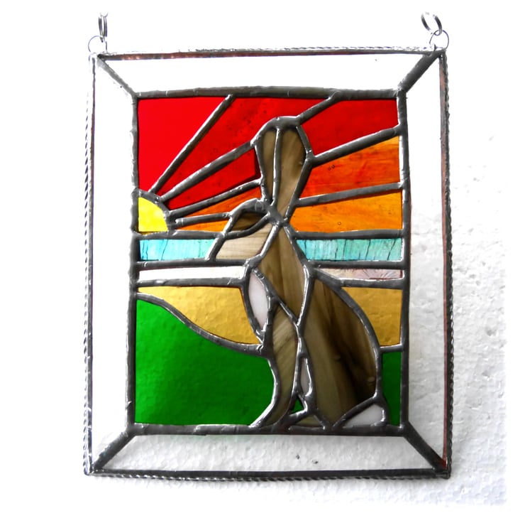 This is a stained glass suncatcher made using the Tiffany copper foil technique.