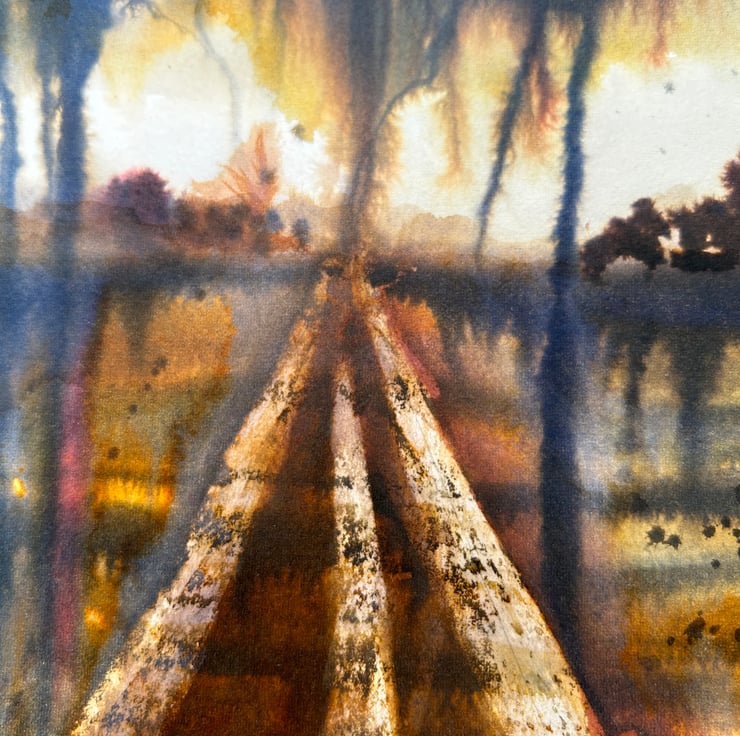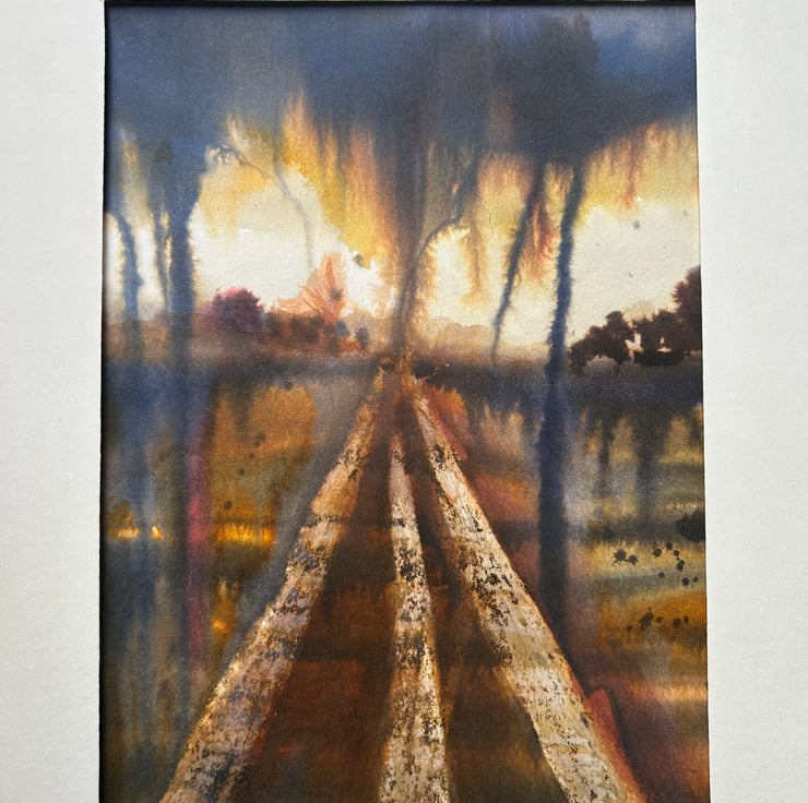 Painted on high-quality, cotton watercolour paper– the fibres have stained in a pleasing way, adding extra texture to this piece.