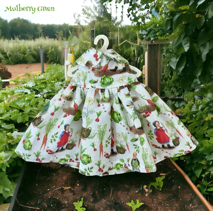 A beautiful little dress in a Daniela Drescher print, to fit the Mulberry Green characters. The dress is made from best quality designer cotton, has a full skirt and a lined bodice.