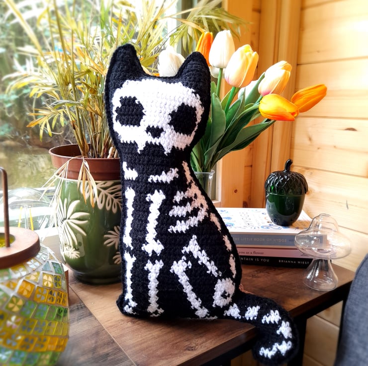 This listing is for the pattern only for the Spooky Cat Mini Cushion. This is currently only the pattern for one skeleton side and one normal cat side.