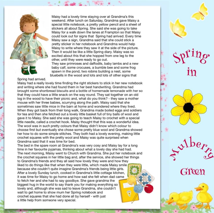 You can read my stories about Mulberry Green on my Facebook and Instagram pages - Maisy Muffin Rag Dolls or alternatively, you can find all of my stories on my Pinterest board - Mulberry Green stories