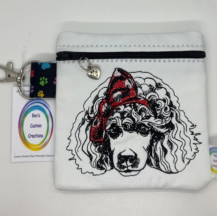 Embroidered Sketchy Poodle simple small bag use for loose change.