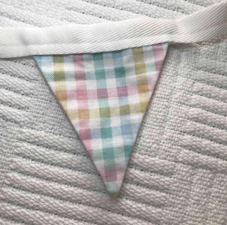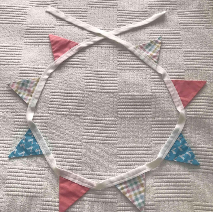 This Easter Bunny bunting would be suitable not only for Easter time but surely will decorate any nursery room. A mixture of pink, blue bunny and pastel colour gingham create a toned and calming pallet.