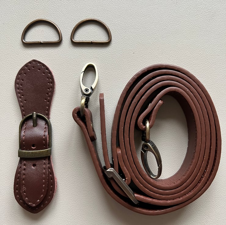 Brown colourway bag strap, clasp and D-ring hardware kit specifically for making a Felt Bag on a Ball if you are following my online course or instructions in my book Wet Felting.