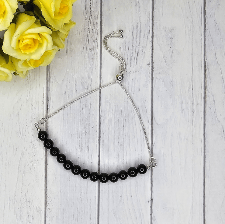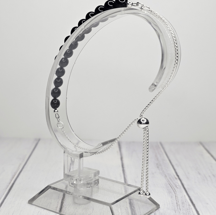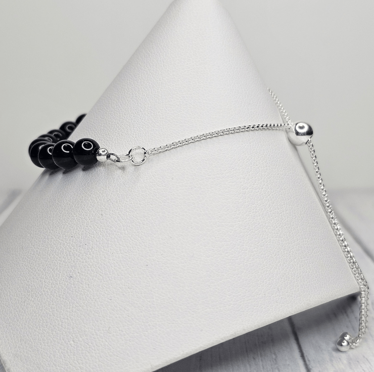 Adjustable round box chain, sterling silver, featuring a 6mm slider bead, and 3mm ball ends.