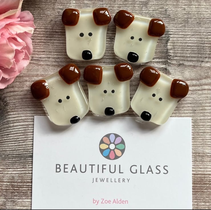 The glass measures approximately 2cm x 2.5cm and the backing card is approximately 7cm x 9.5cm. This particular puppy is cream with brown ears and a little black nose. Other colours are also available, please enquire. Comes in a gift bag and it can be posted directly to your special friend or loved one.