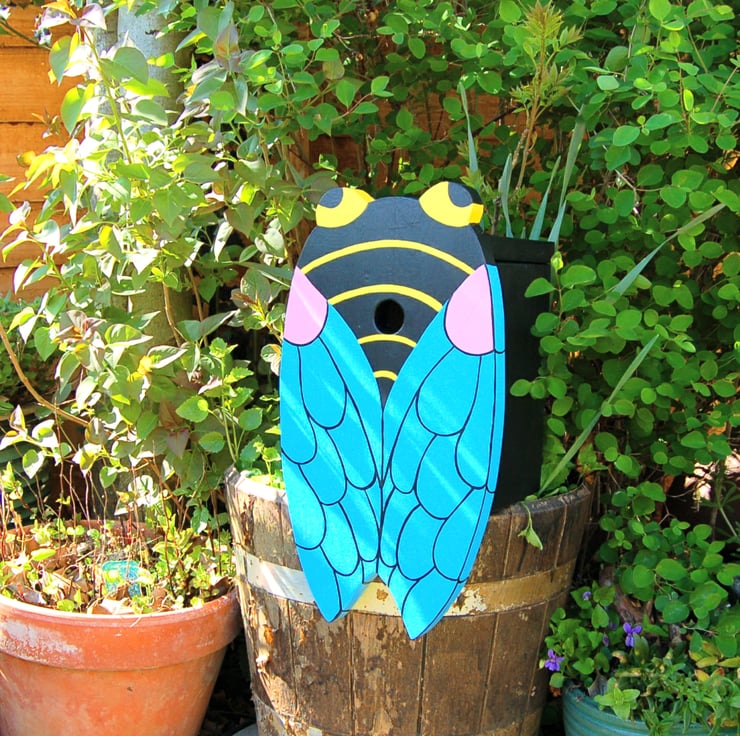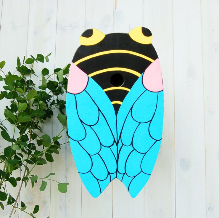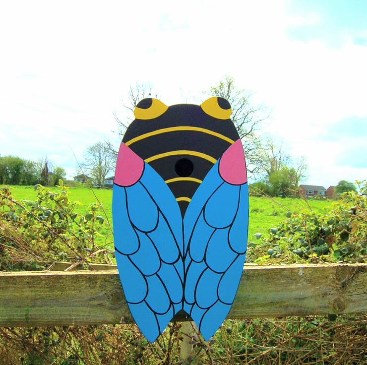 Our handmade insect bird box is based on a cicada, although this one is much quieter than the real thing! It will be a fabulous place for birds to nest as well as a bright and extremely quirky addition to the garden.