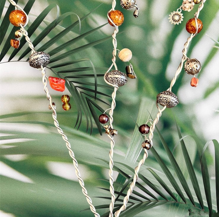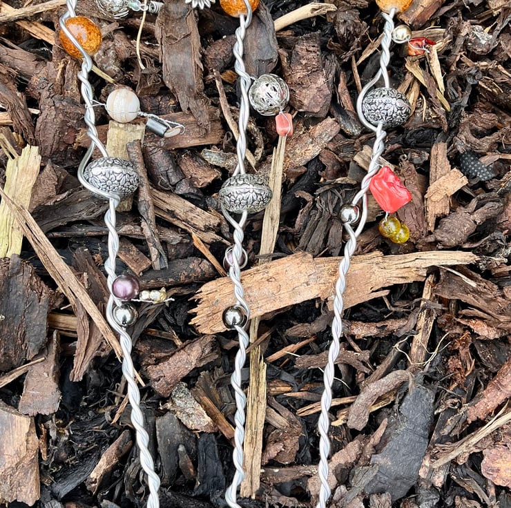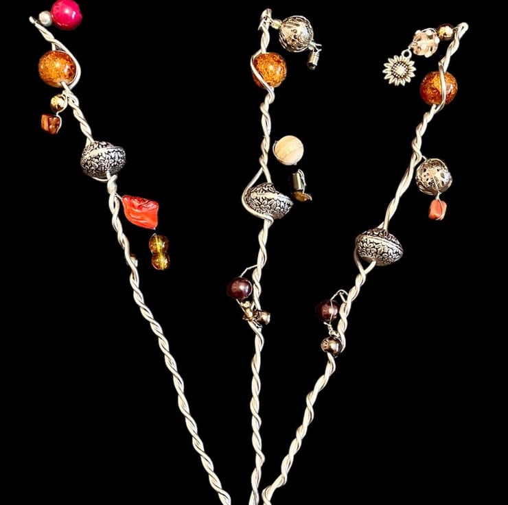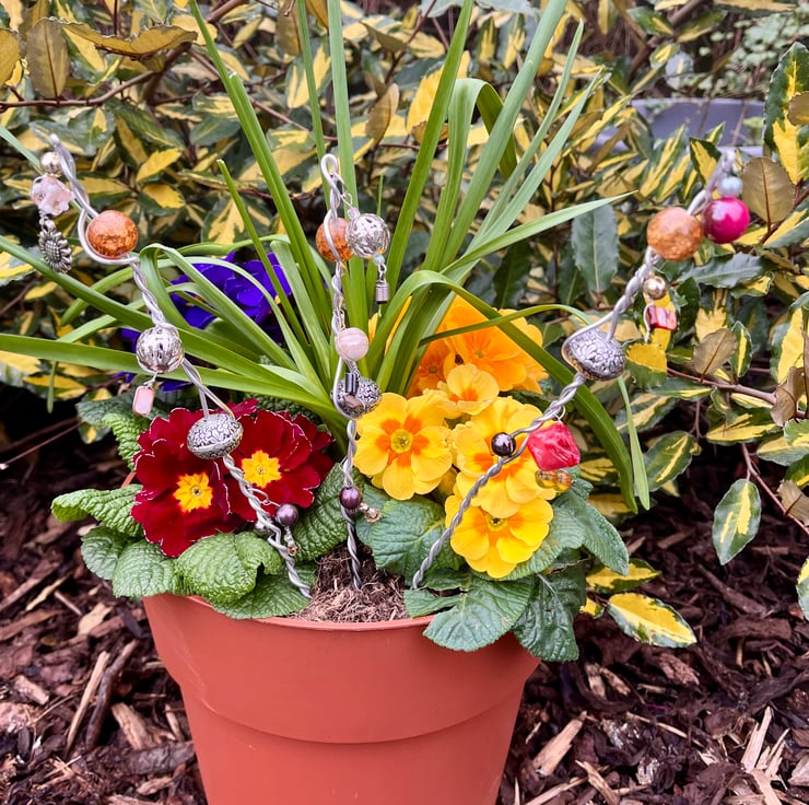 Each beaded stake is meticulously handcrafted using a unique blend of metal wire and charms and resin beads in an array of textures and colours which look like little fairy wands.