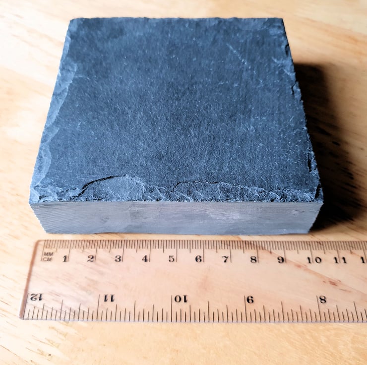 A rustic slate block, ideal for your own craft projects for hand or machine carvings. This is a natural product and thus each one is unique with uneven surfaces on both the front and back, which gives them a rustic feel. All four sides are machine cut, so quite smooth by comparison (please see photos).