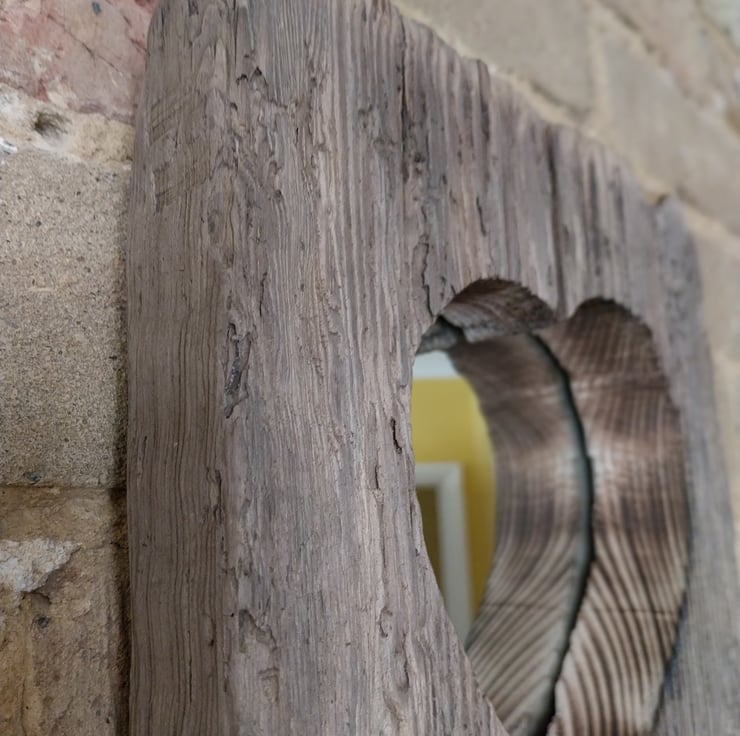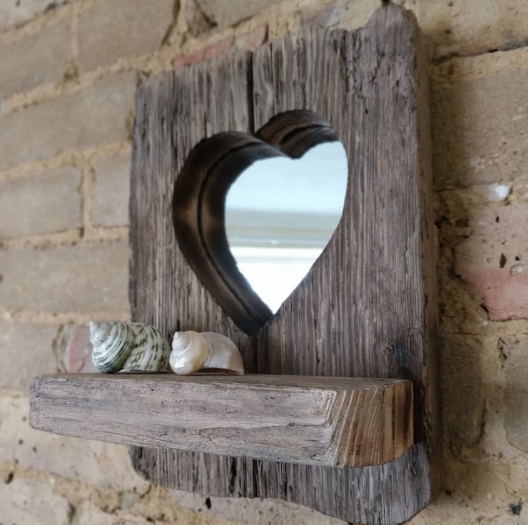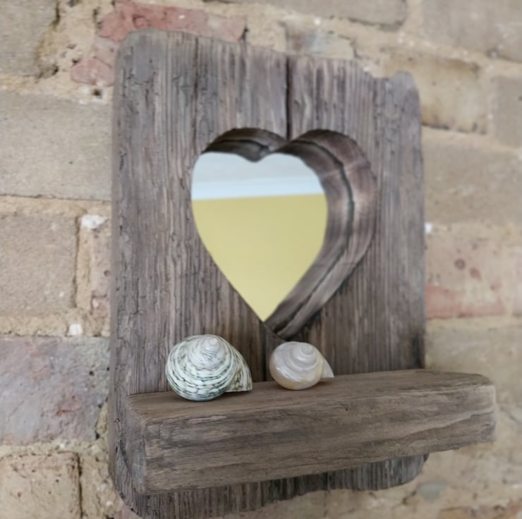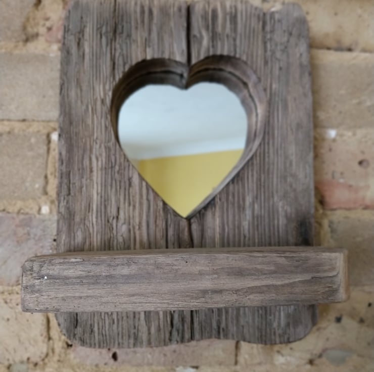 Handmade Rustic Driftwood Heart Mirror Shelf
