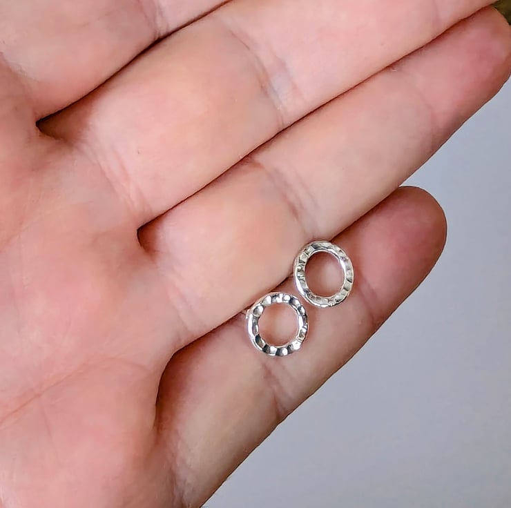 These little earrings are made sterling silver, hammered and textured.