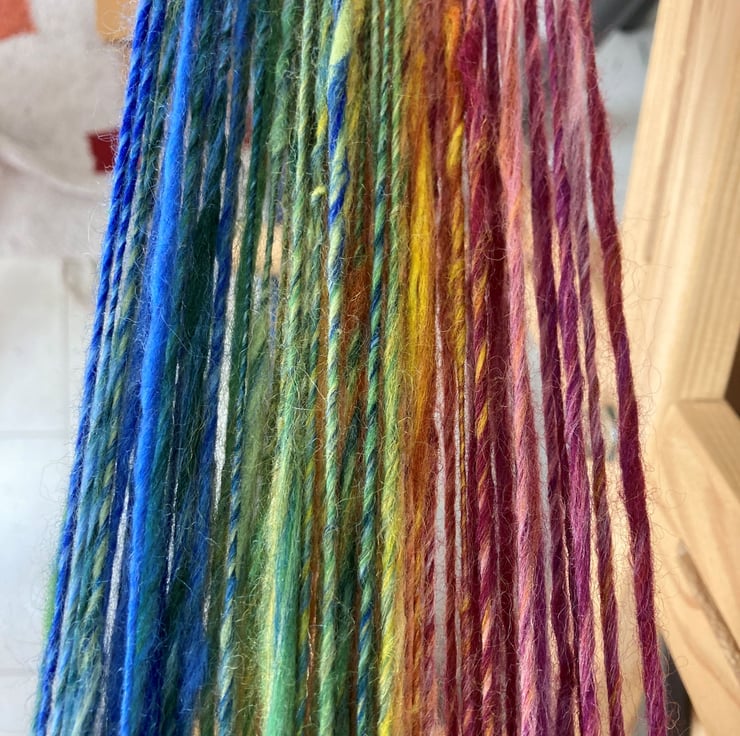 I love to dye rainbow colours and to spin yarn in the shades of the Northern Lights.