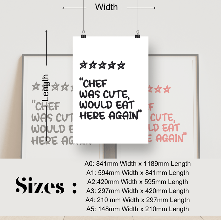 Hang it proudly on your walls or gift it to your favourite chef or food enthusiast. It's perfect for adding a touch of personality to cafes, restaurants, or home kitchens.