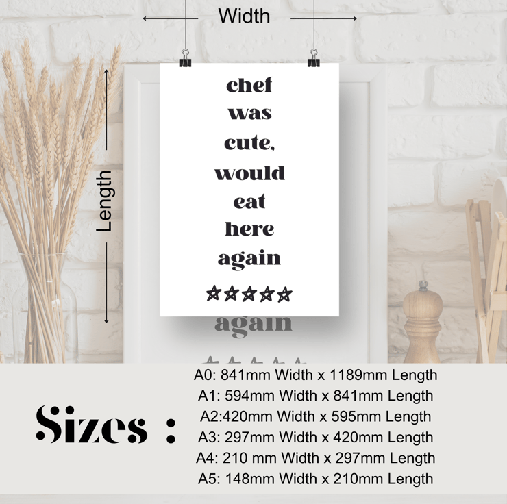 Hang it proudly on your walls or gift it to your favourite chef or food enthusiast. It's perfect for adding a touch of personality to cafes, restaurants, or home kitchens.