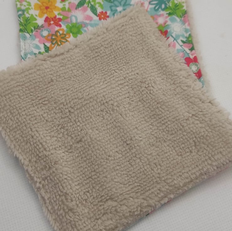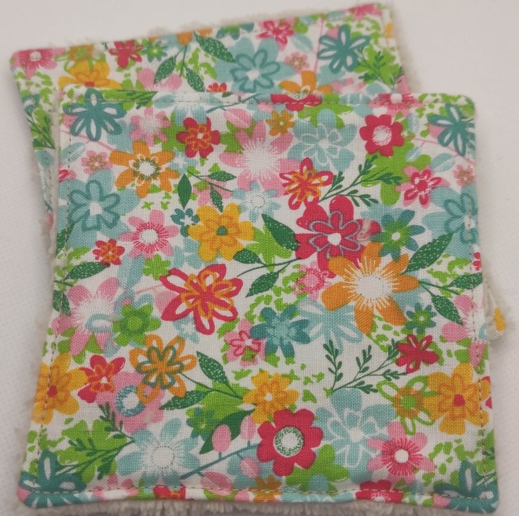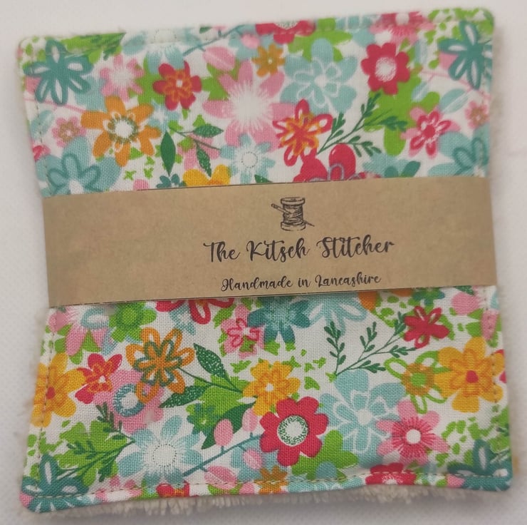 A pair of matching 4.5” reusable face pads, handmade using 100% cotton fabrics and beautiful velvet bamboo towelling. This set is made from cotton with a quirky, modern floral print.