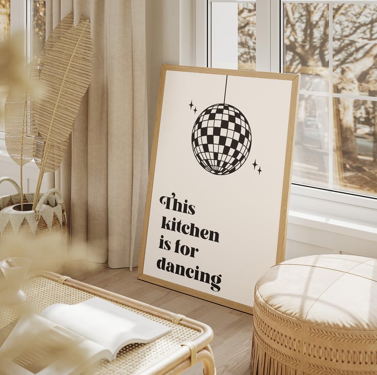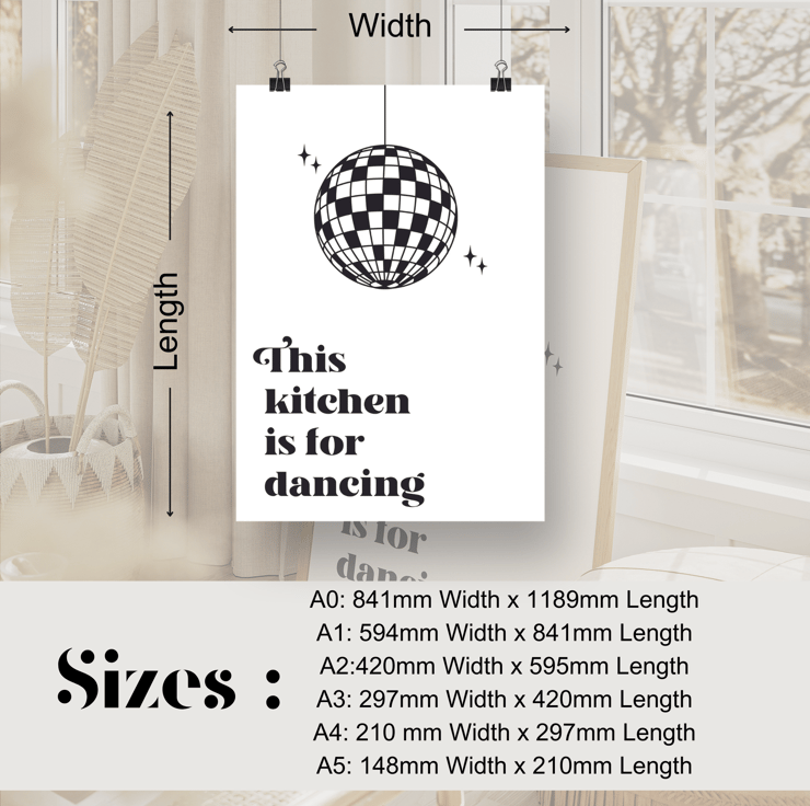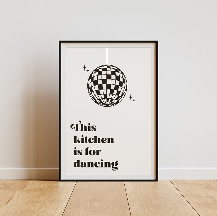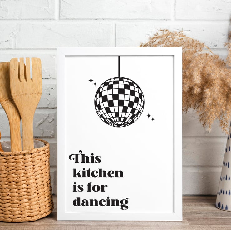 Bring a dash of joy and a sprinkle of whimsy into your kitchen with our delightful "This Kitchen is for Dancing" poster! Perfect for adding a touch of personality to your culinary space, this charming typographic print will inspire fun and laughter in your home.