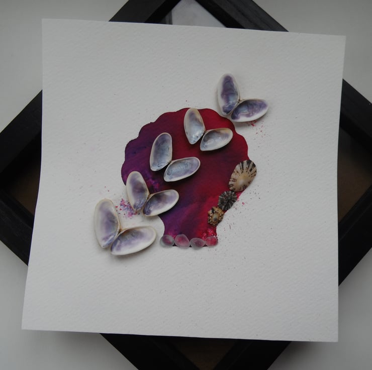 A beautiful red & purple tie-dye sea shell made with butterfly Cornish sea shells & sea glass.