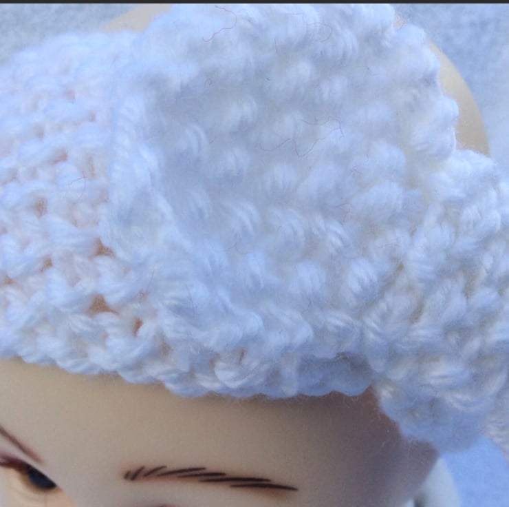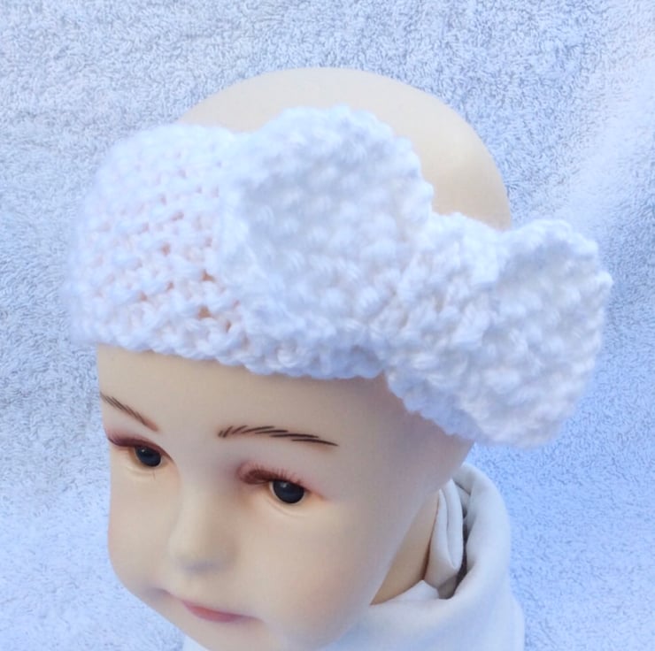 Baby headband white hand knit 0-6 months