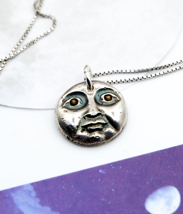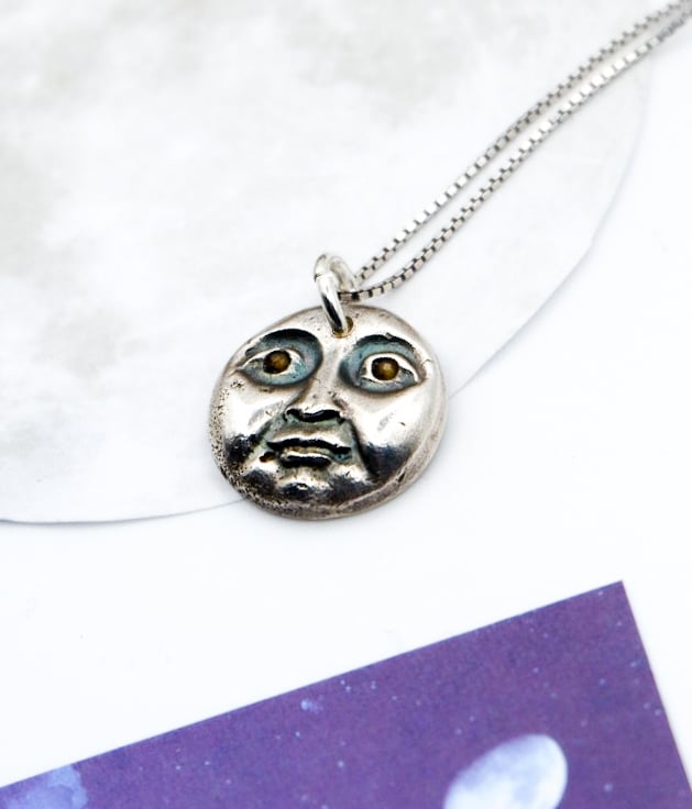 Magical nights under the moon inspired this enchanting recycled silver moon face necklace!