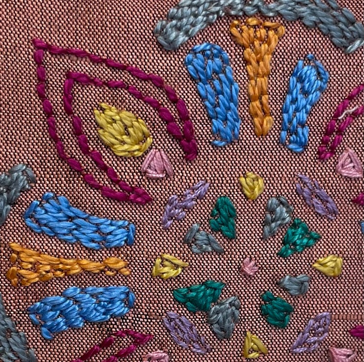 This design is influenced by the colours and shapes of South Asian embroidery which I love.
