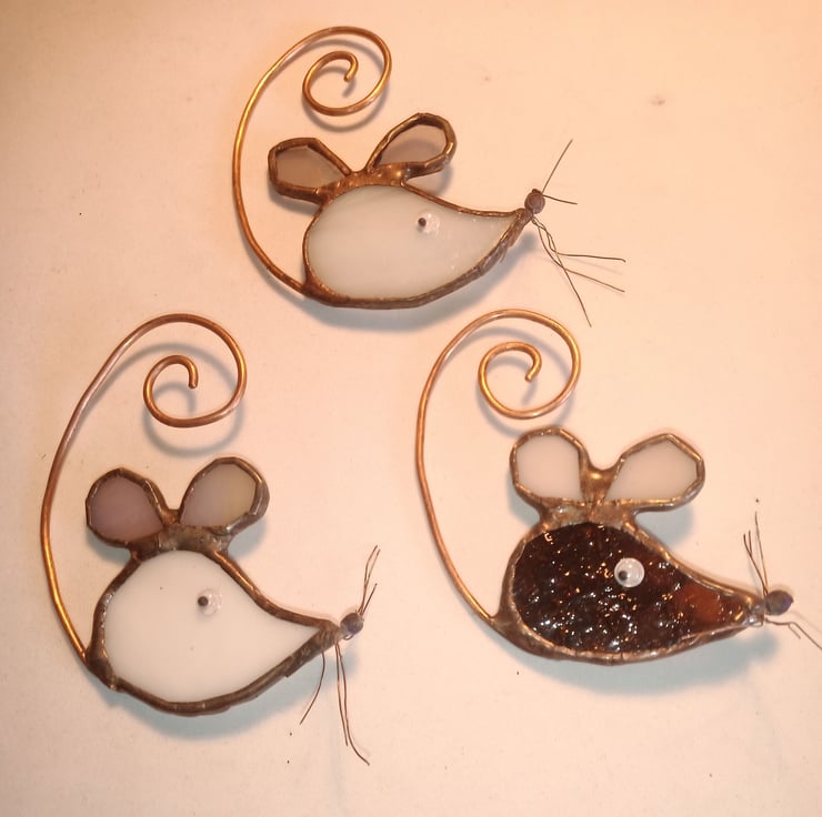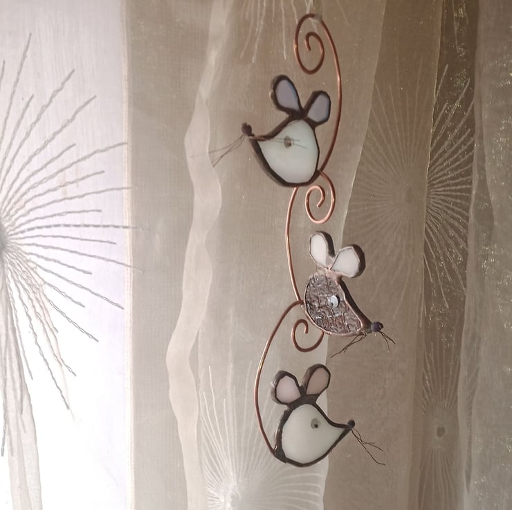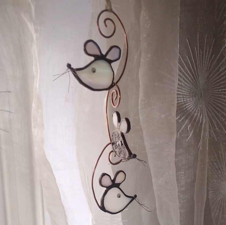 They look great hanging in a window or from a hanging basket either individually or linked together by their tails. A lovely gift for mice lovers or a pretty anytime present