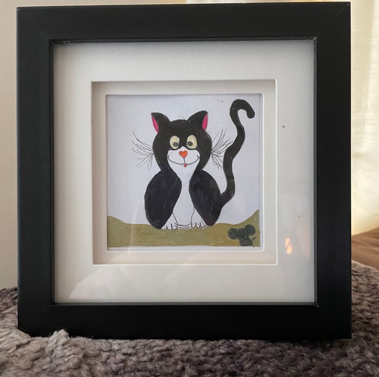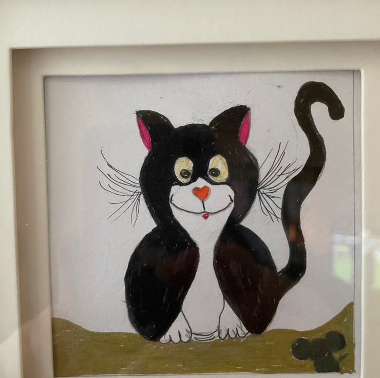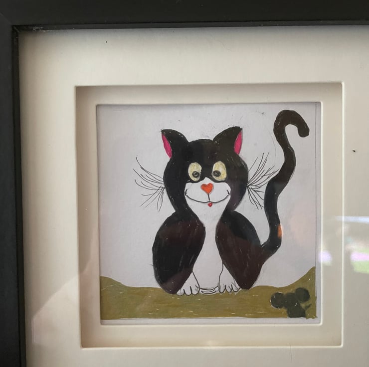 1 off hand drawn and coloured ‘Furline Friends’ black and white ‘Tuxedo Cat’ picture. Drawn using fine liners, metallic pens and very worthy HB pencils.