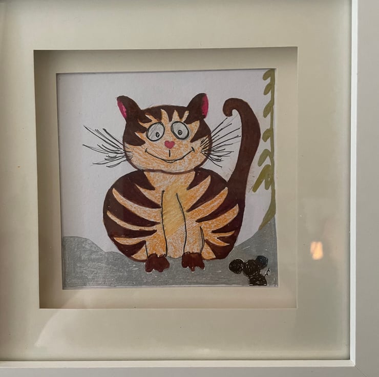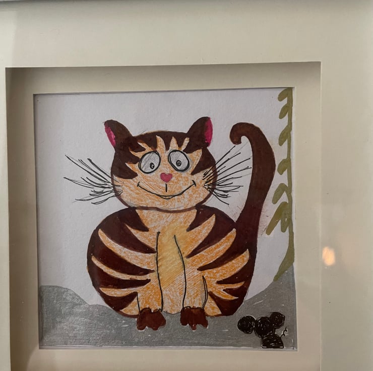 1 off hand drawn and coloured ‘Furline Friends’ ginger tabby cat picture. Drawn using fine liners, metallic pens and very worthy HB pencils.