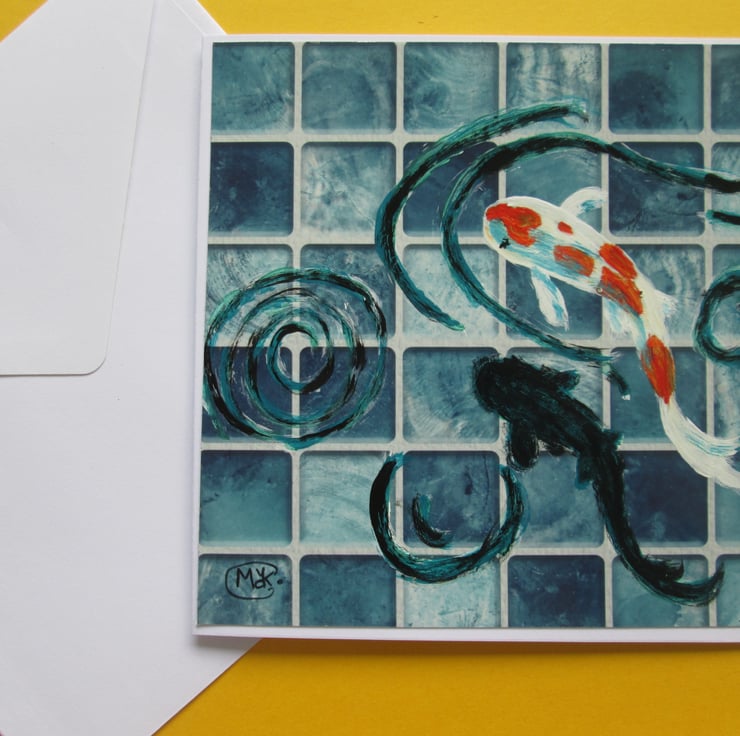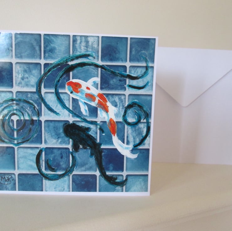 Fathers Day Hand painted Koi Fish on tiles. Blank inside. Blank inside