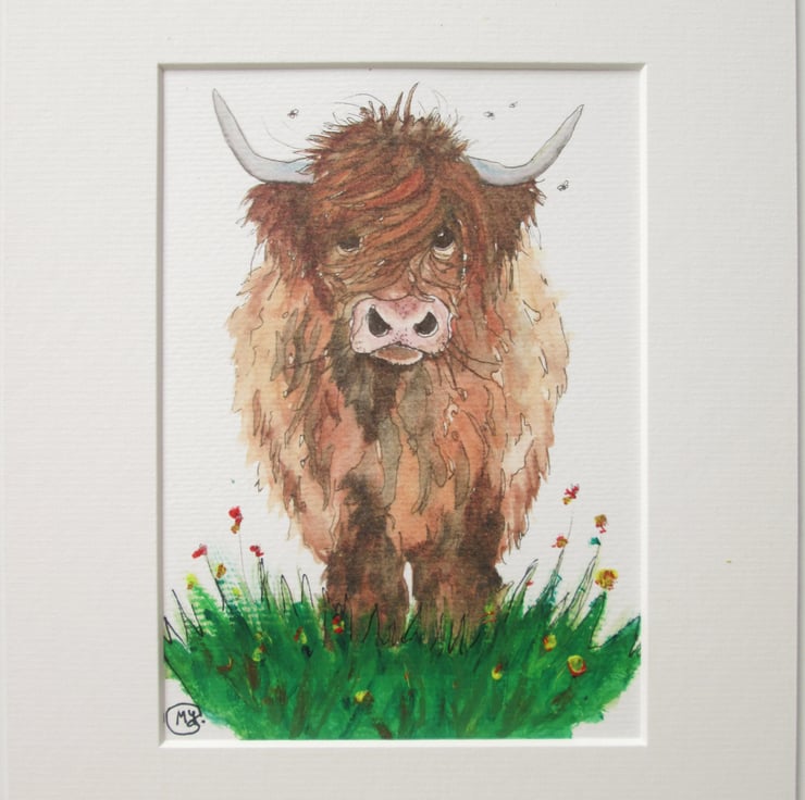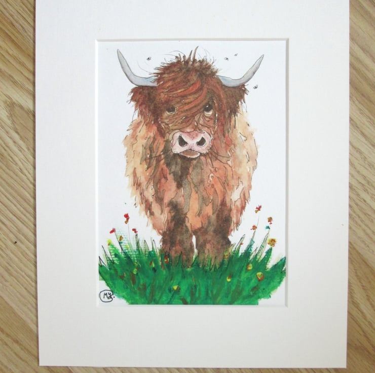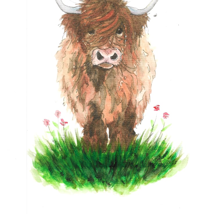 Cows are fun and happy animals to see and paint. Big Hairy Cow. Cow Farm Animal. This is a print of my own original watercolour painting on quality paper.