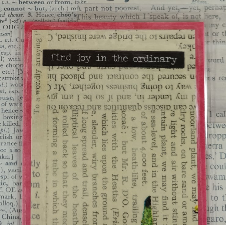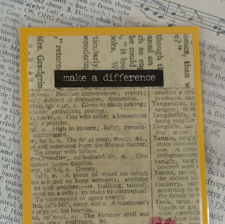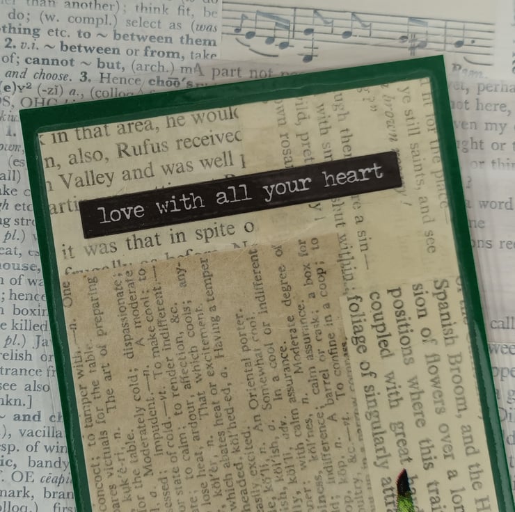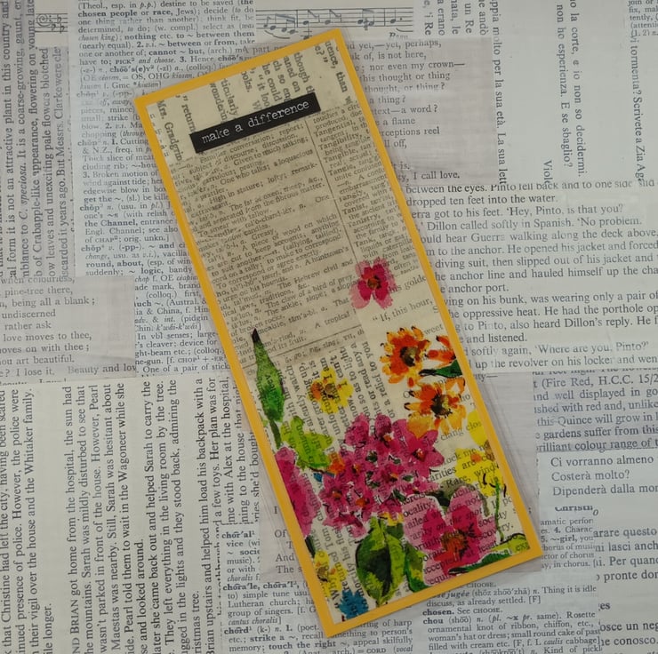 Floral bookmarks with backgrounds created using old book pages. Each of the bookmarks has a positive message. The backgrounds have been mounted onto coloured card and laminated for durability.