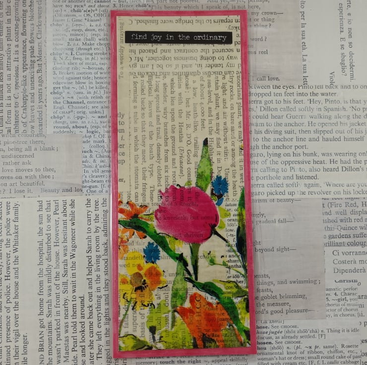 Handmade floral collage bookmark