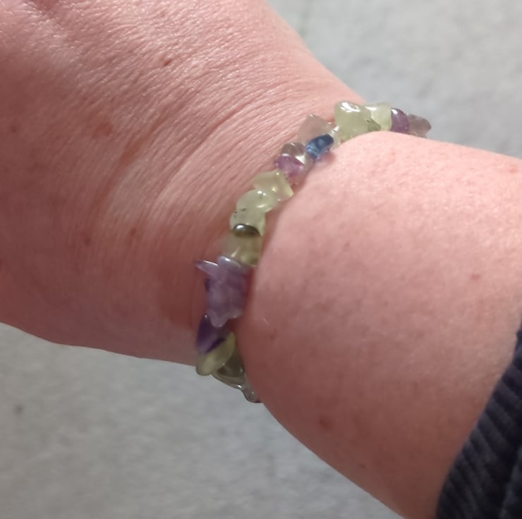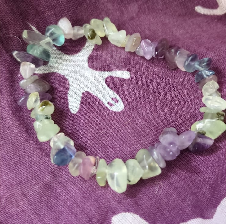 I wanted to use prehnite as it is such a lovely shade of green, and when I put it with amethyst and rainbow fluorite, they were a perfect match.