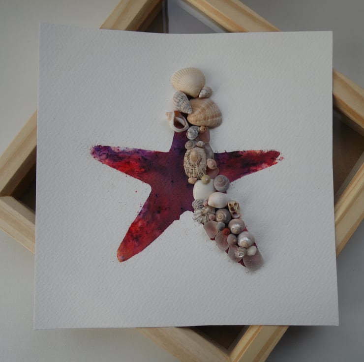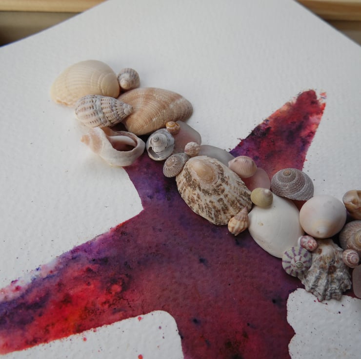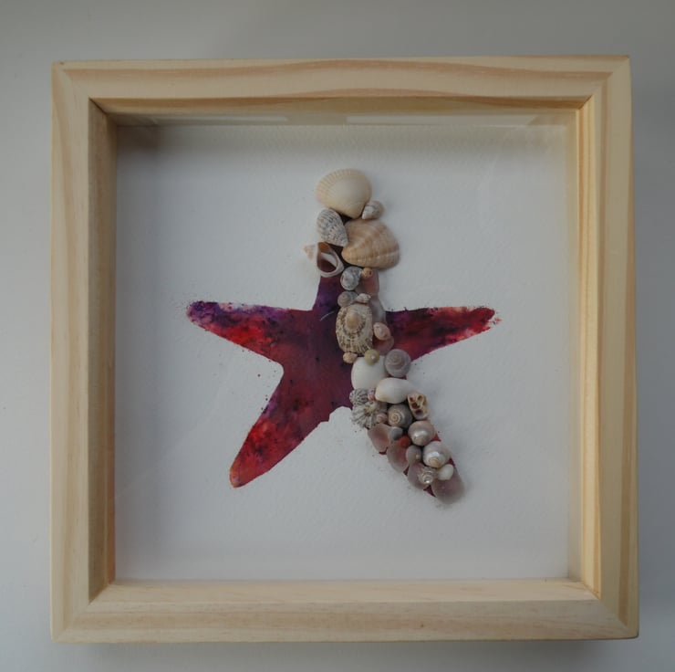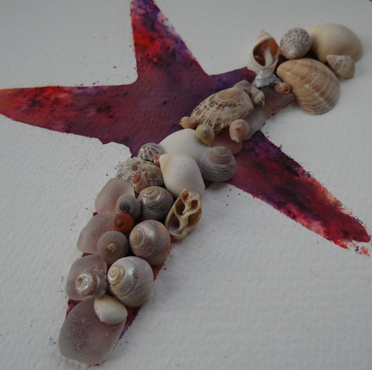A beautiful purple & orange tie-dye starfish embellished with beautiful Cornish sea glass & sea shells.