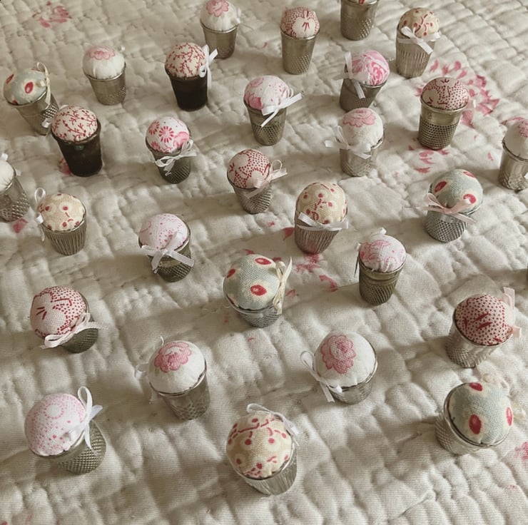 So these thimble pin cushions are actually just perfect for isolating and storing a couple of needles - if like me you don’t like them mixed up randomly in a pin cushion with your pins - and a perfect fit for your travel sewing case.