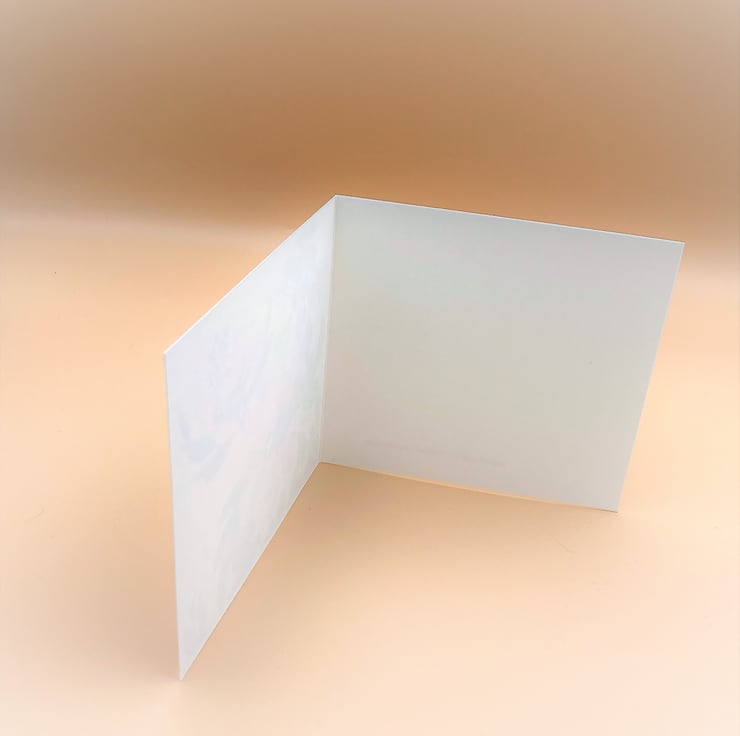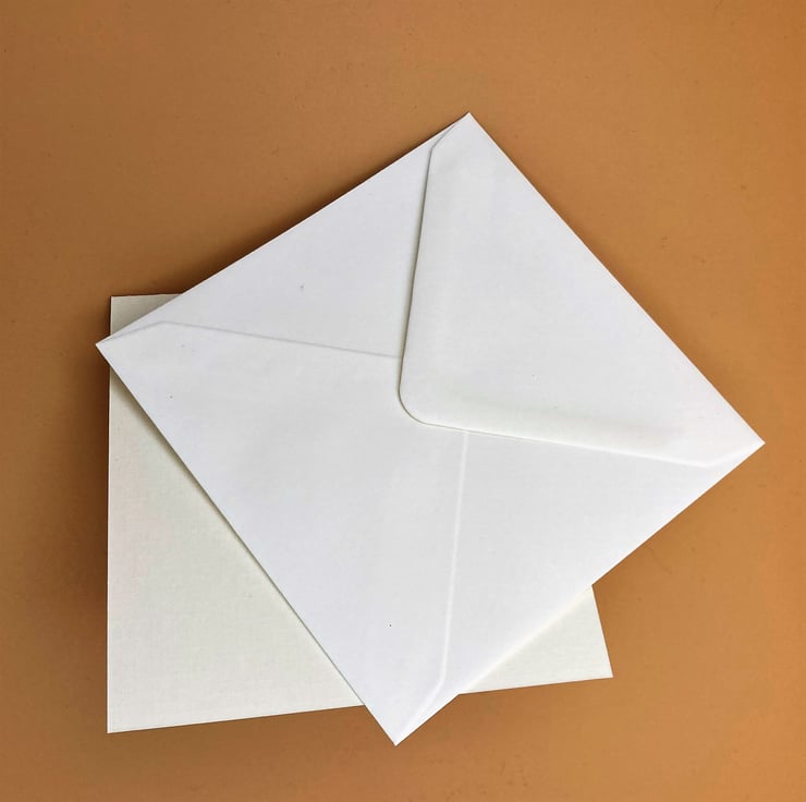 The card measures 12.5 x 12.5 cm and is supplied with a 13 x 13 cm envelope in a cellophane wrapper.
