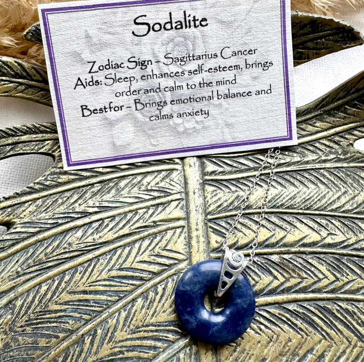 The Amethyst donut measures 18mm in diameter, so is more subtle in size for those who want something more delicate. Comes complete with a printed card, which gives the properties associated with the Sodalite crystal. The card also gives the associated zodiac sign, which is unrelated to the specific properties of the stone.