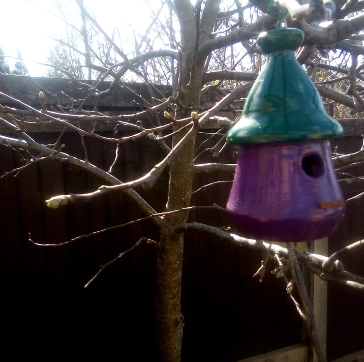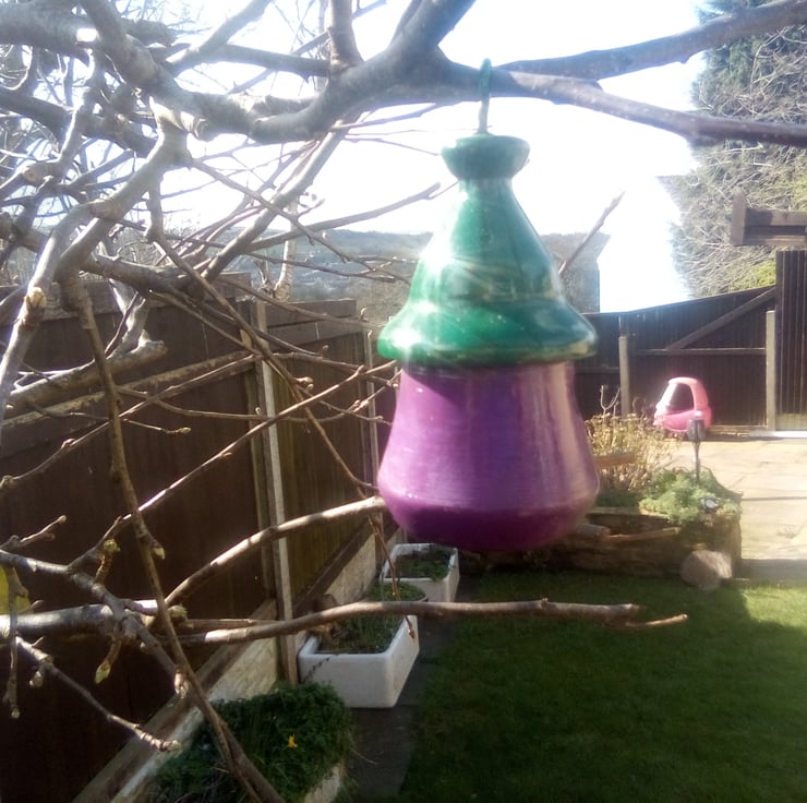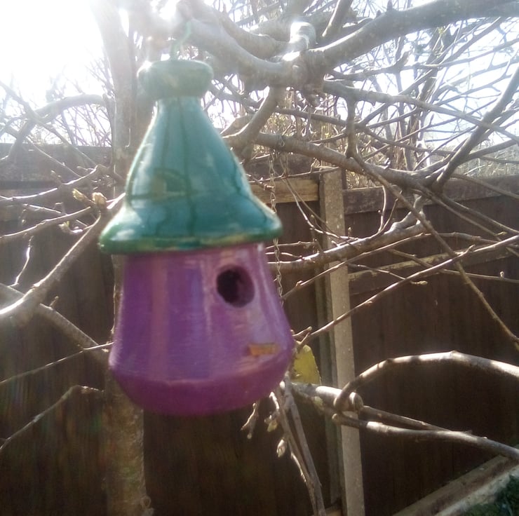 Insect box in the shape of a bird box. Hollowed out bird box ideal for insects. Hand painted.