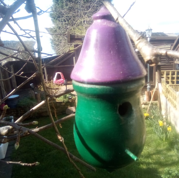 Medium insect box. In the shape of a bird box. Hollowed out.
