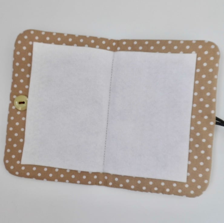 The lining is a coffee and white spotted quilting cotton.