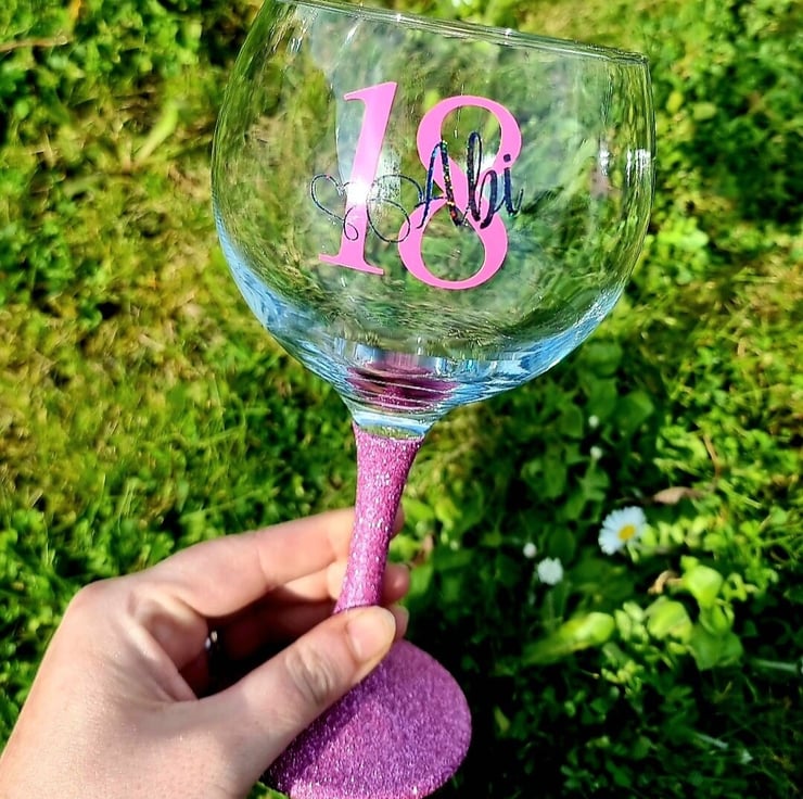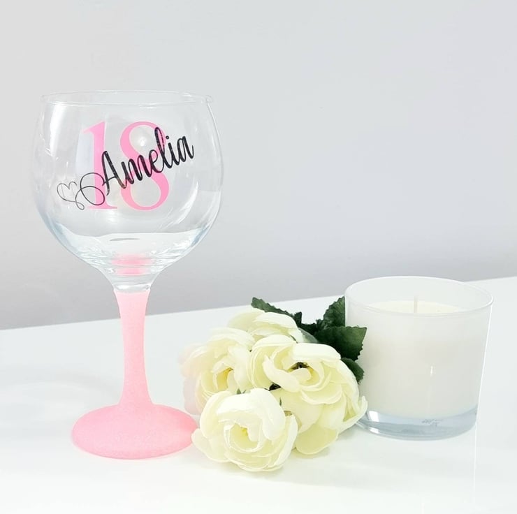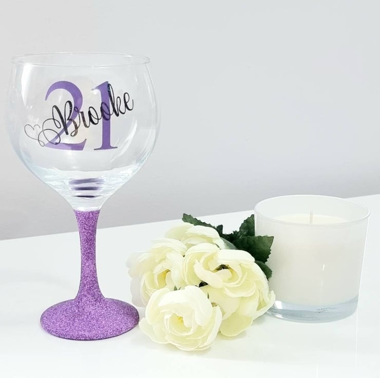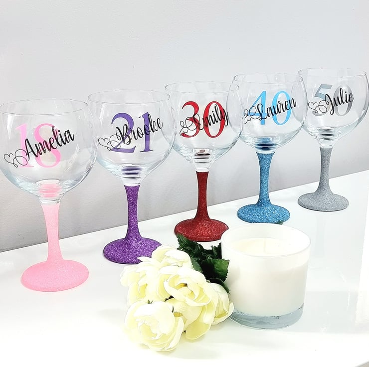 Beautifully Personalised Birthday Glitter Gin Glass With Your Choice Of Glitter Colour, Birthday Number And Name