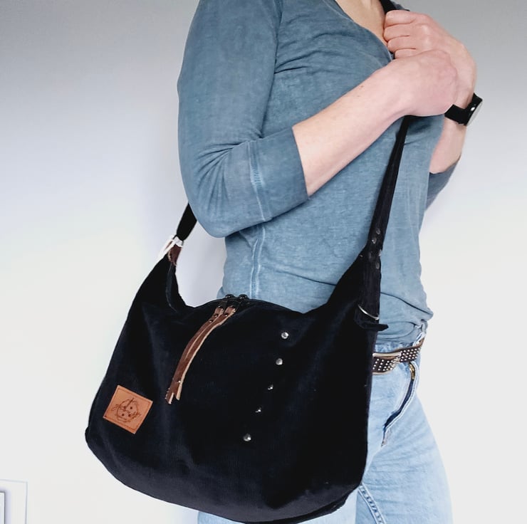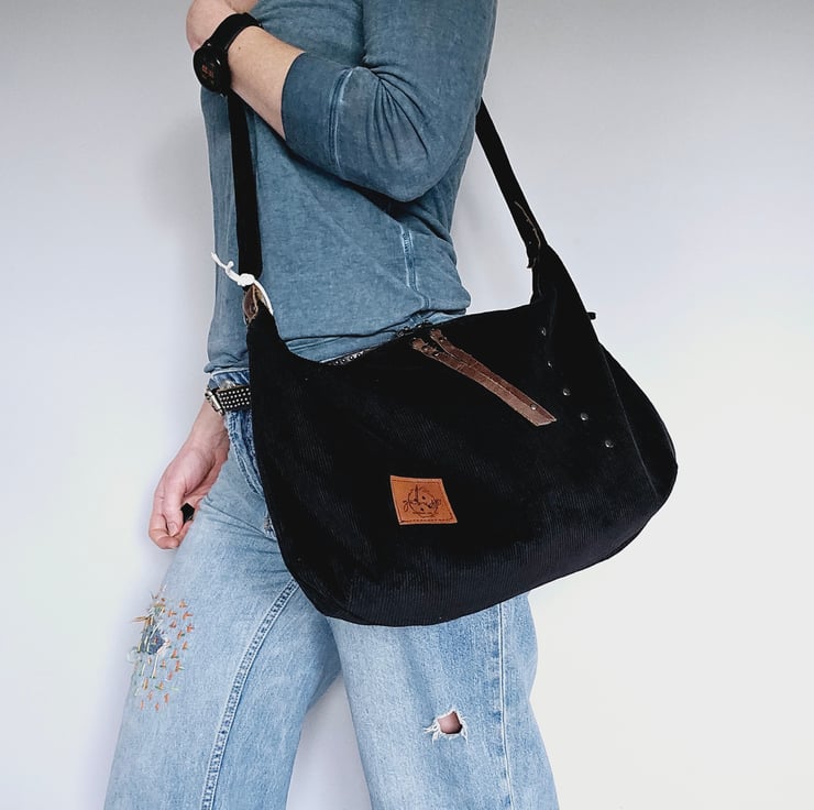 I’ve just added a handmade upcycled denim crossbody bag to my shop – a unique design created from repurposed black jeans and corduroy. Spacious, practical, and eco-friendly, it’s the perfect everyday bag for anyone who loves sustainable fashion and one-of-a-kind style.