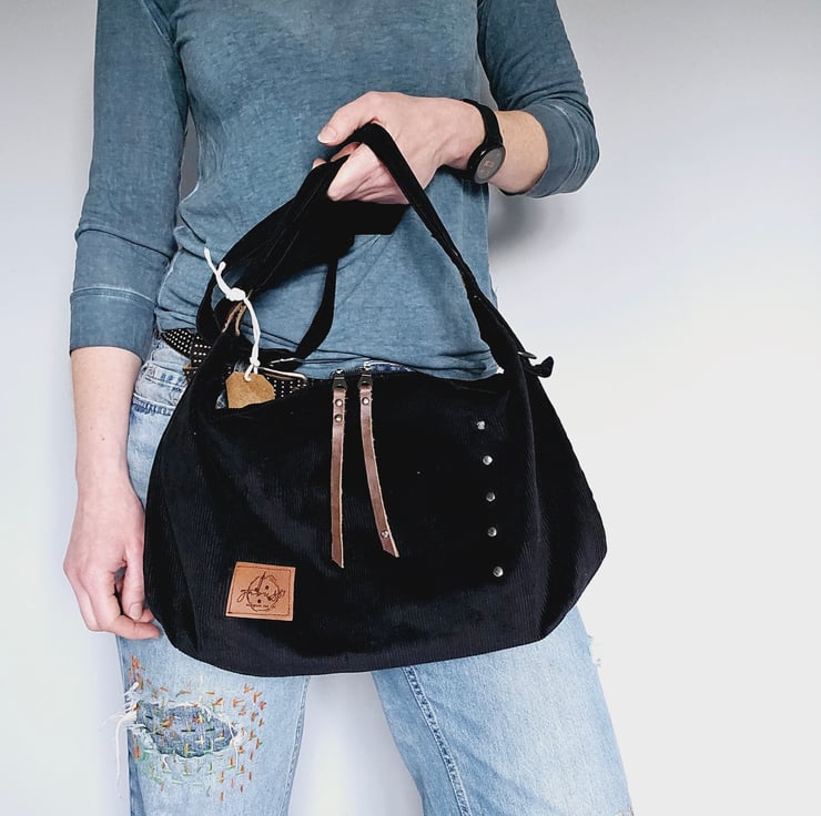 Next to denim, corduroy is my most preferred material for work. The outcome is this simple yet distinctively elegant black shoulder bag.