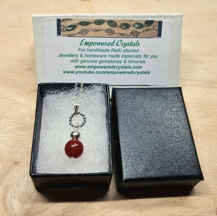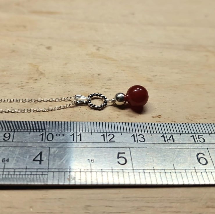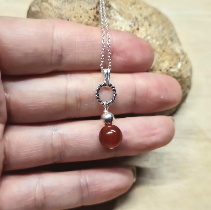 Small circle rope Red Carnelian pendant. July birthstone necklace.